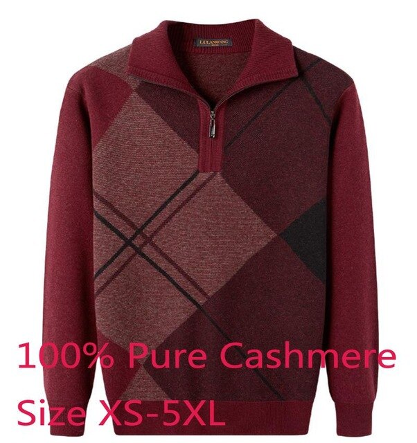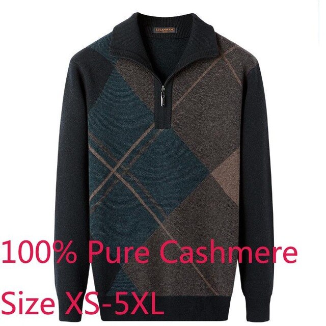 New Arrival High Quality 100% Pure Cashmere Sweater Thickened Winter Men Zipper Turn Collar Large Casual Knitted Plus Size S-4XL