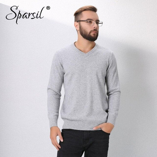 Sparsil Men Warm Cashmere Sweaters Deer Suede Knit Neck&Elbow Protection Soft Pullovers Autumn Winter Long Sleeves Knitted Tops
