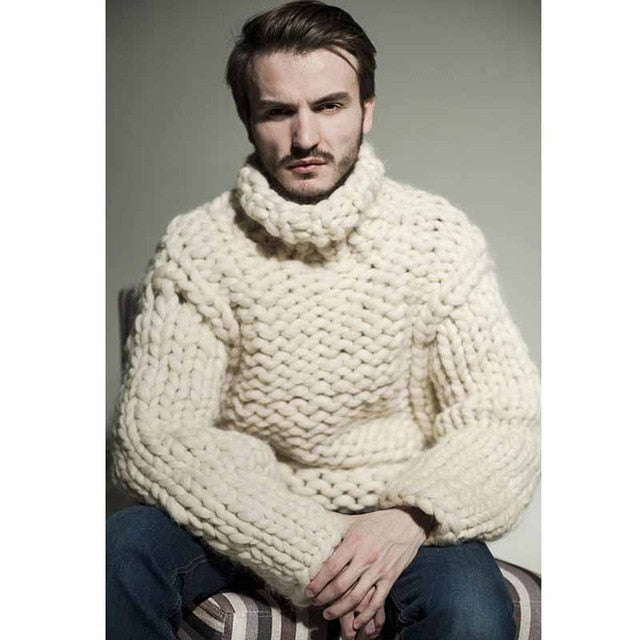 Spring Super chunky Men's Sweater Loose Casual Navy blue Pullover Sweater coat Thick warm Hand-knitted men's Thick Sweater